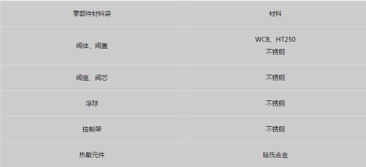 產品主要零部件材質: